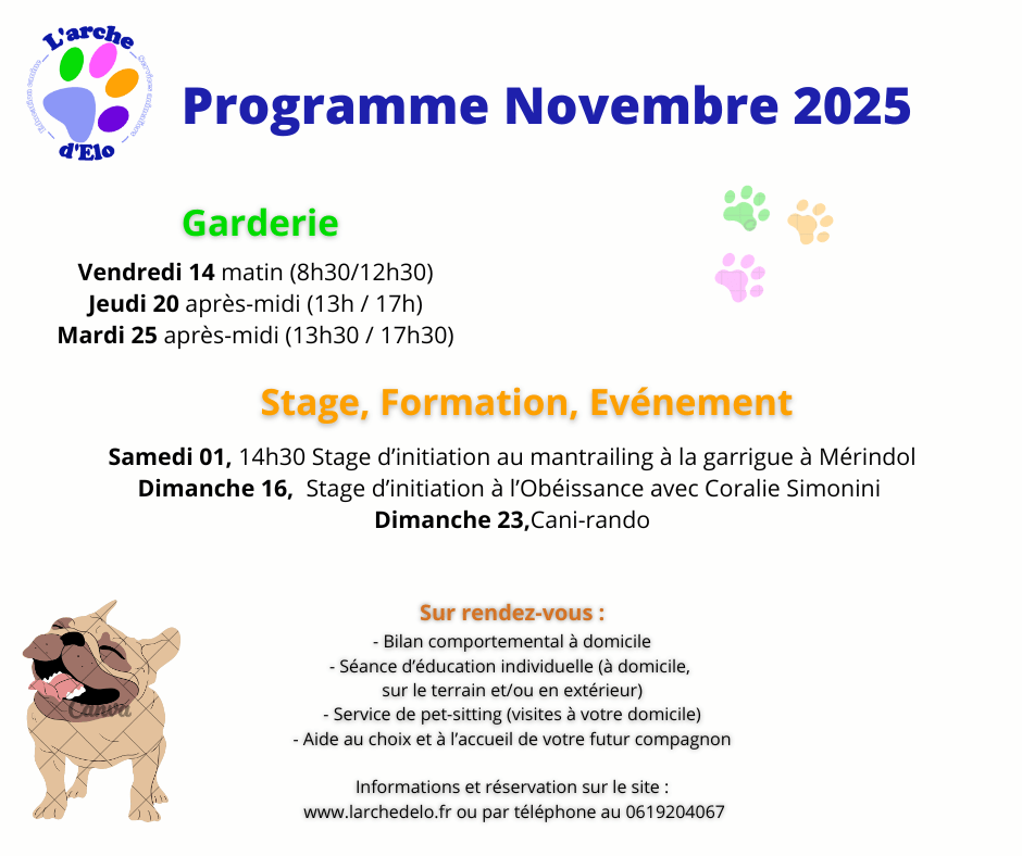 Ces activités sont accessible sur réservation (nombre de place limité) pour les chiens sociables (ou déjà suivi), à jour dans leur vaccination (maladie de Carré, Parvovirose, Hépatite de Rubarth, Leptospirose et toux du chenil) et traité contre les parasites internes et externes.